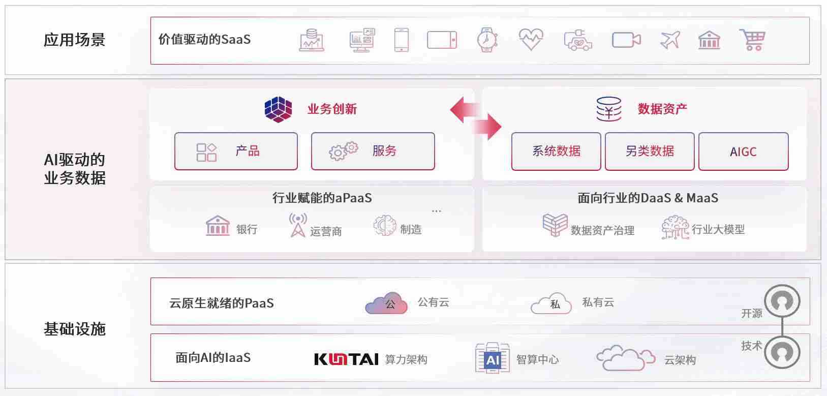 数字时代,,,围绕企业数字化转型的关键要素,,尊龙z6数码开创性的提出数云融合战略和技术体系框架,,,着力在云原生、、、数字原生、、、AI原生和信创产业上架构产品和服务能力,,,,为处在不同数字化转型阶段的快消零售、、、、汽车、、、、金融、、、、医疗、、、政企、、教育、、运营商等行业客户提供泛在的敏捷IT能力和融合的数据驱动能力,,,构建跨界融合创新的数字业务场景和新业务模式,,助力企业级客户建立面向未来的核心能力和竞争优势,,,,全面推动社会的数字化、、、、智能化转型升级。。