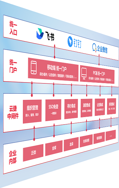 对协作平台提供支持服务,,,支持企业应用与协作平台对接,,包含组织同步、、消息集成、、、待办集成等。。支持目前主流的协作平台:钉钉、、企微和飞书。。